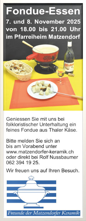Wir freuen uns, Sie als Vereinsmitglied wiederum bei uns begrüssen zu dürfen. Bringen Sie doch auch Ihre Freunde, Bekannten und Verwandten mit und geniessen Sie im gemütlichen Kreise, bei stimmungsvoller musikalischer Begleitung ein feines Fondue aus Thaler Käse.